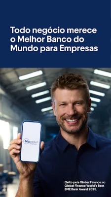 O banco BTG Pactual Empresas é um banco digital PJ completo que te permite automatizar e centralizar as rotinas e a gestão financeira da sua empresa num único app, com folha de pagamento 100% digital, pix ilimitado e mais! Abra sua conta digital PJ e aproveite nossos benefícios exclusivos.
