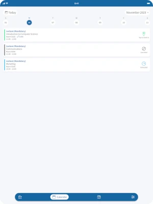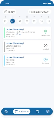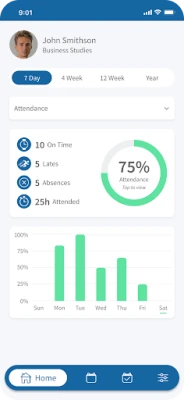 - Tap once to log attendance - View your class schedule - View analytics on your attendance - Request absence from class - Request support from your organisation - Receive class notifications (class cancellation, change of time or room)