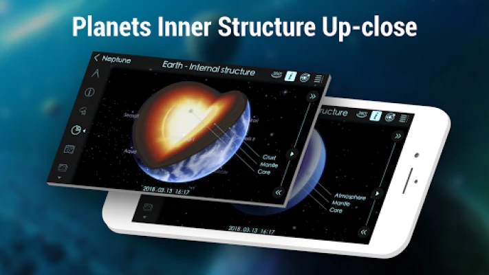 With this interactive planetarium 3D you can travel to the outer space, explore planets in real time, watch satellites, comets and any other celestial body, get acquainted with the outstanding space missions and spectacular 3D models of spacecraft, study celestial event calendar with various astronomical events, learn interesting astronomy facts.
