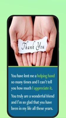 The thank you messages for friends App offers a wonderful thank you for being my best friend and thank you message for a friend who help me ,as well as thank you best friend ,as well as thank you for being my friend quotes and thank you my friend and aslo a word of appreciation to a friend and appreciate quotes for best friend and appreciation for a friend.